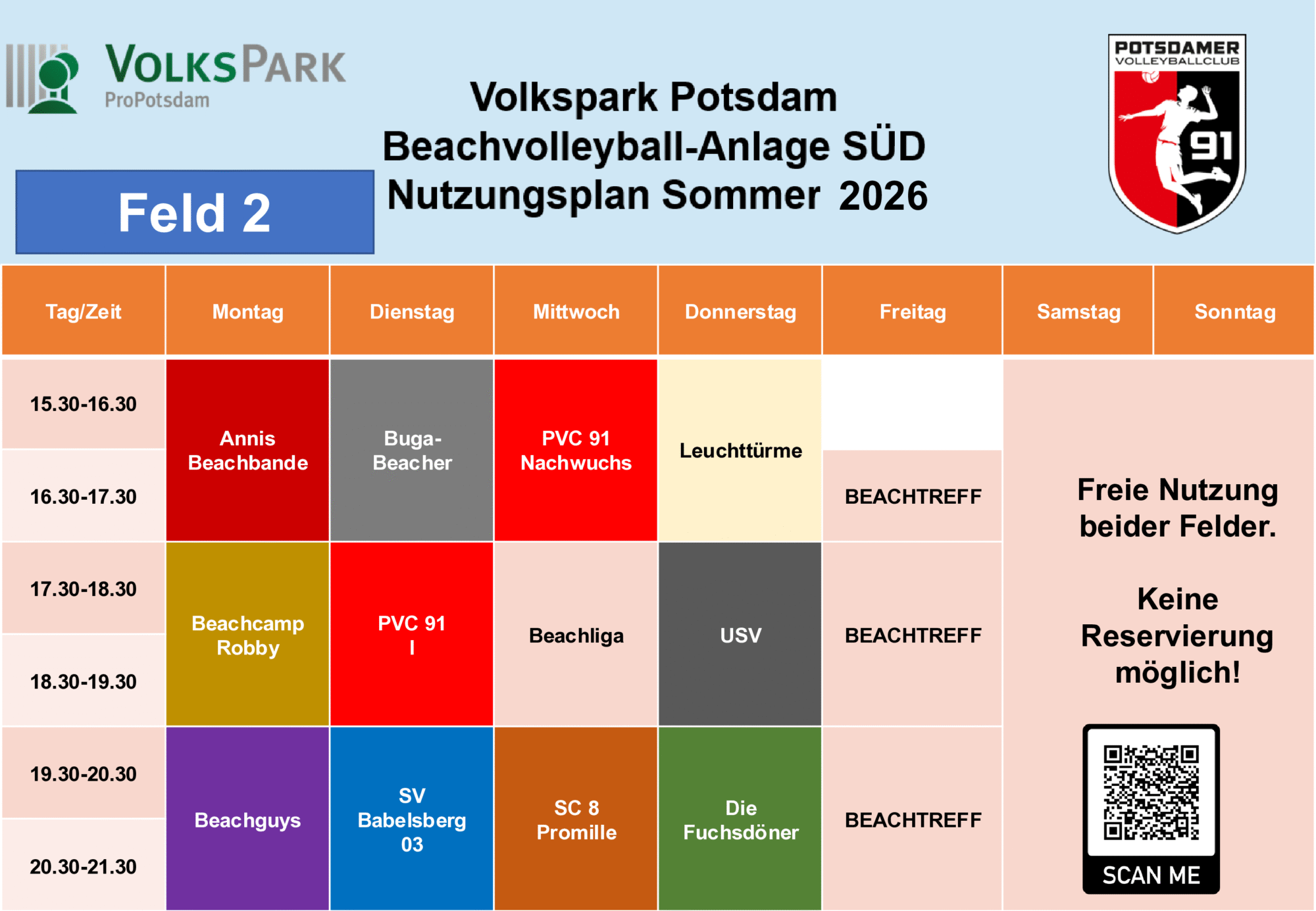 Und wir, der Potsdamer Volleyballclub 91 e.V. unterstützen als Kooperationspartner die dauerhafte Vergabe eines Platzes, um Beachern einen regelmäßigen Spielbetrieb zu ermöglichen.